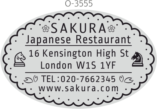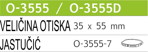Shiny Printer O-3555. Pečat je ovalnog oblika. Dimenzija otiska je 55×35 mm.
