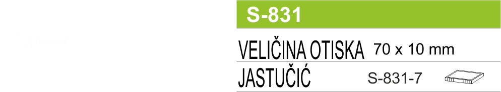 Shiny Printer S-831. Dimenzija otiska je 70×10 mm.